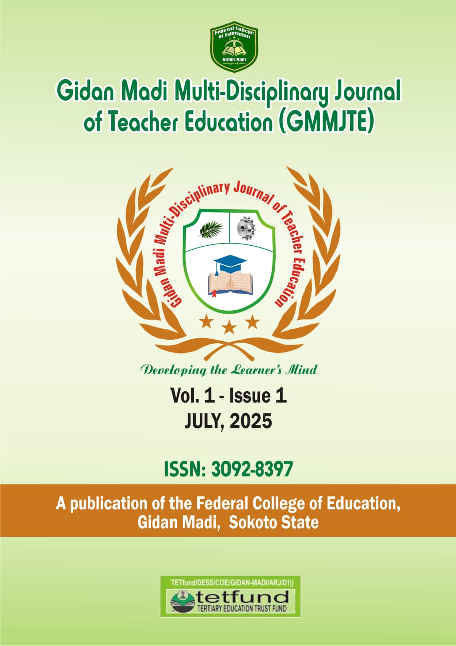 Issue No. 1 Vol. 1: Gidan Madi Multi-Disciplinary Journal of Teacher Education (GMMJTE), Volume 1, Issue 1, July 2025.